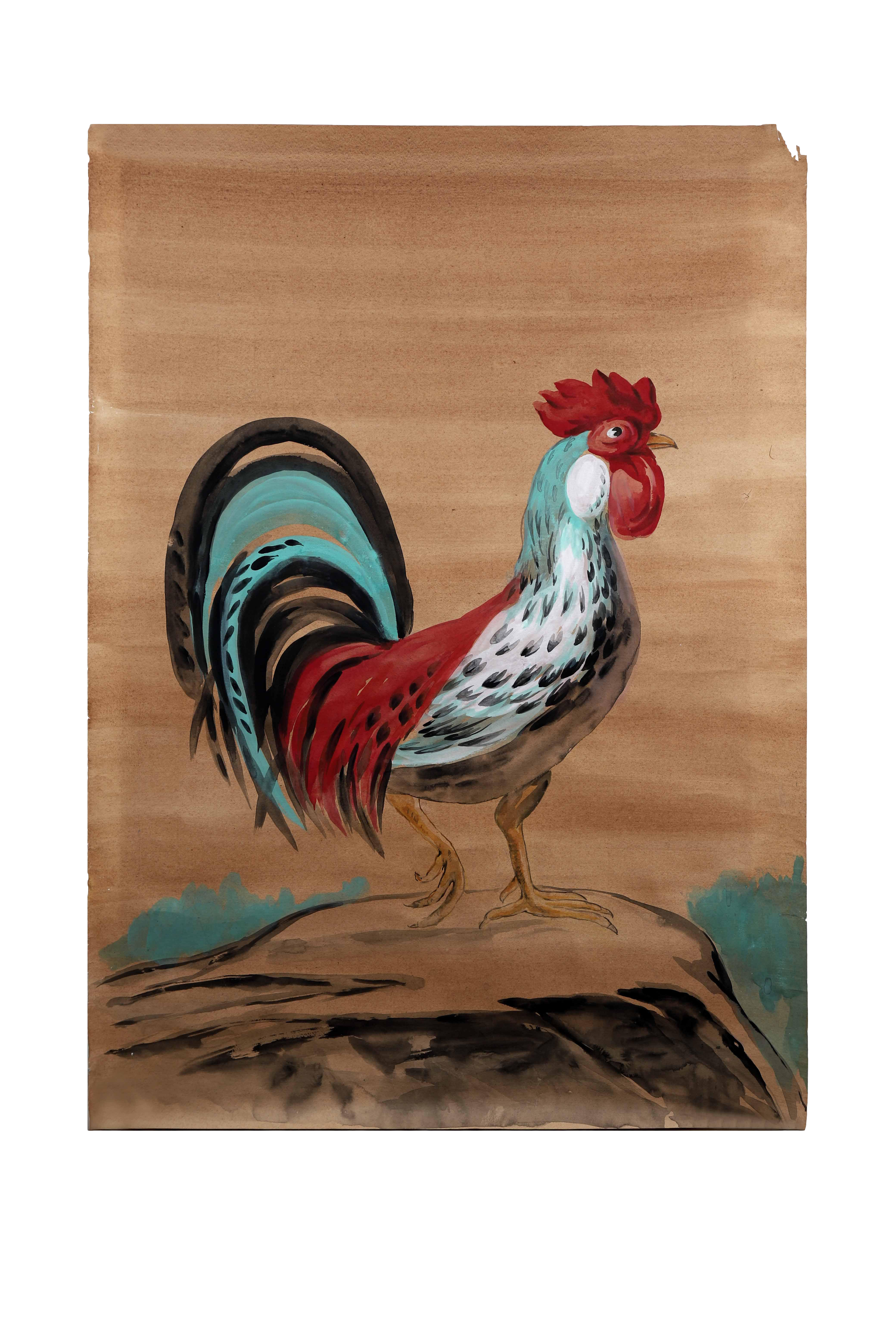 Hand Painted Oil Painting Of A Rooster And Chicken Of The Same