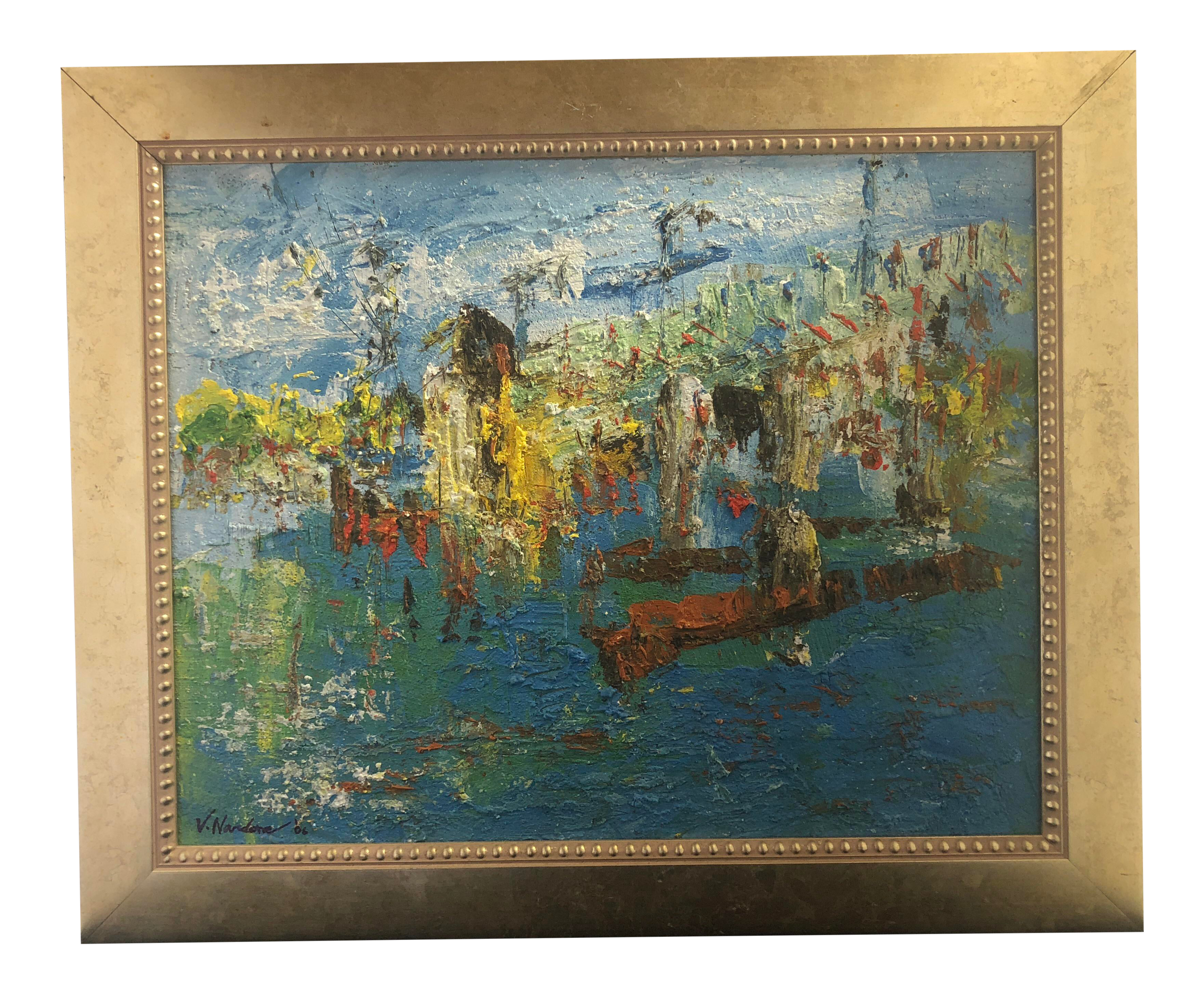 Colorful Oil Painting On Canvas Texture Semi Abstract Image
