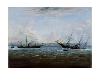 U S S Kearsage Vs C S S Alabama Painting By Pg Reproductions