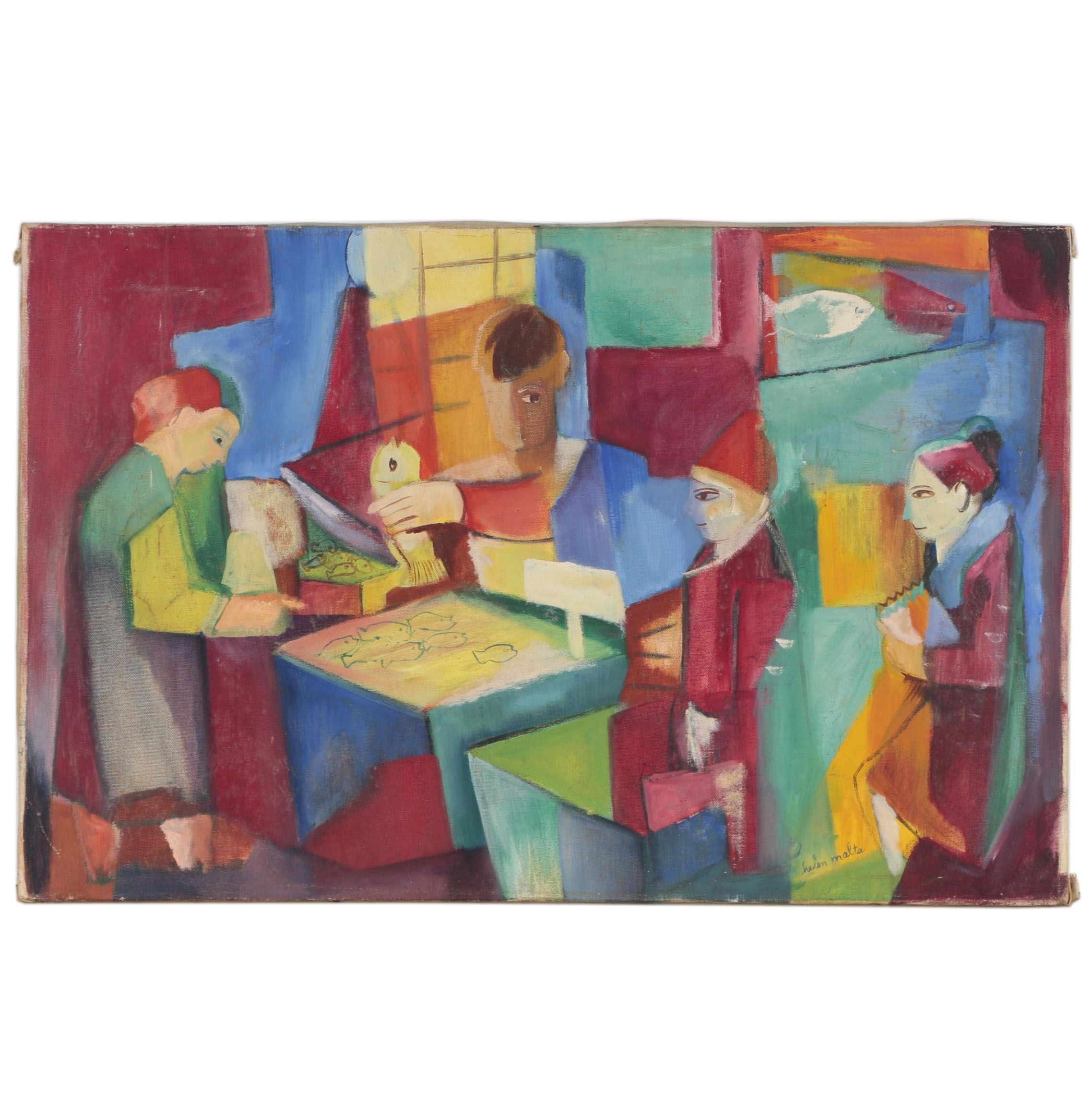 French Cubist Style Gouache Painting B4199 Bk Antiques