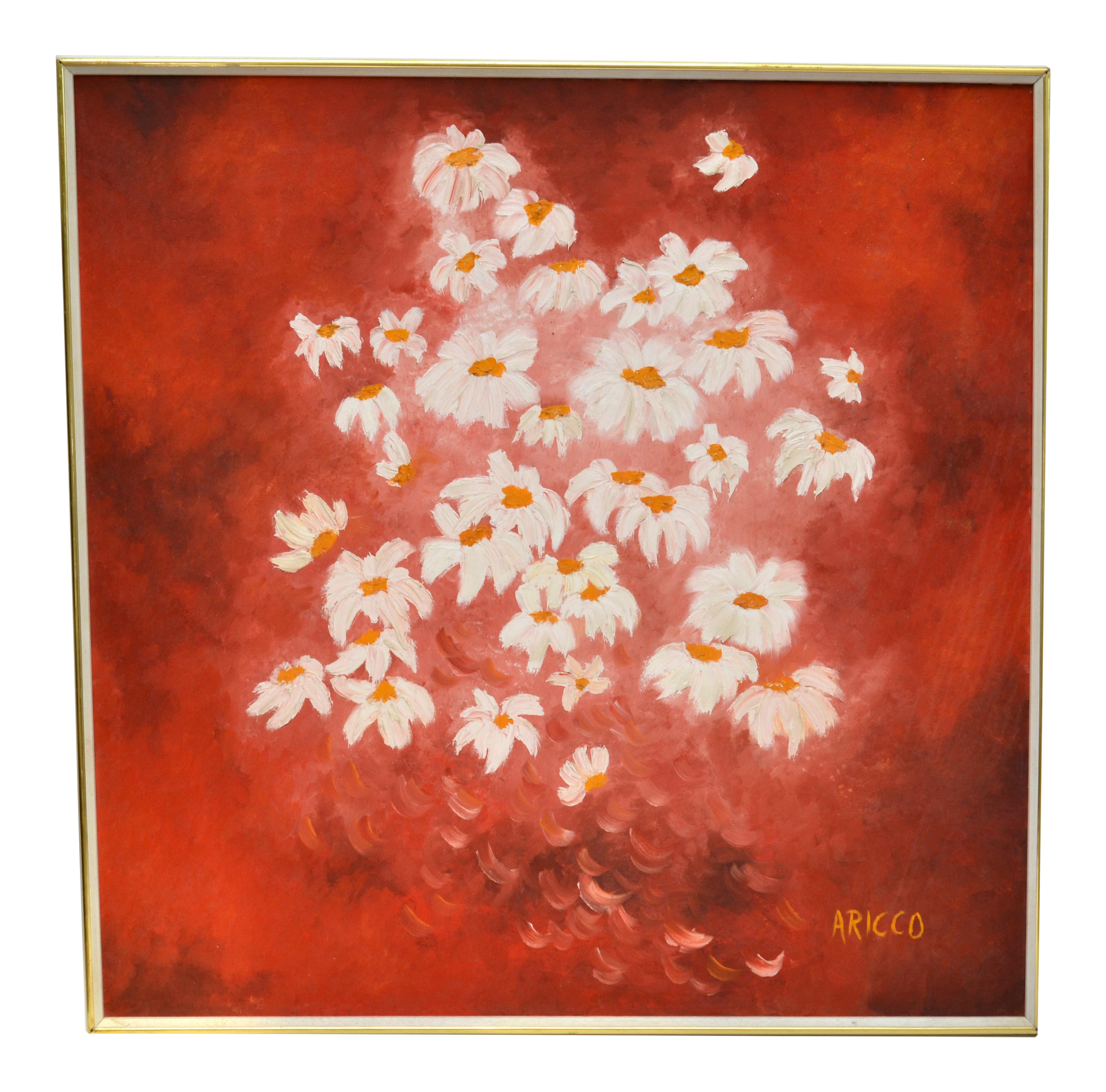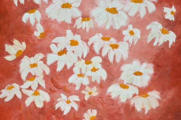 Daisy Flower Painting With Dark Blue Background Impressionistic