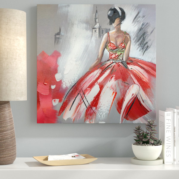 Amazon Com Uac Wall Arts Lonely Lady In Red Dress Modern Artwork