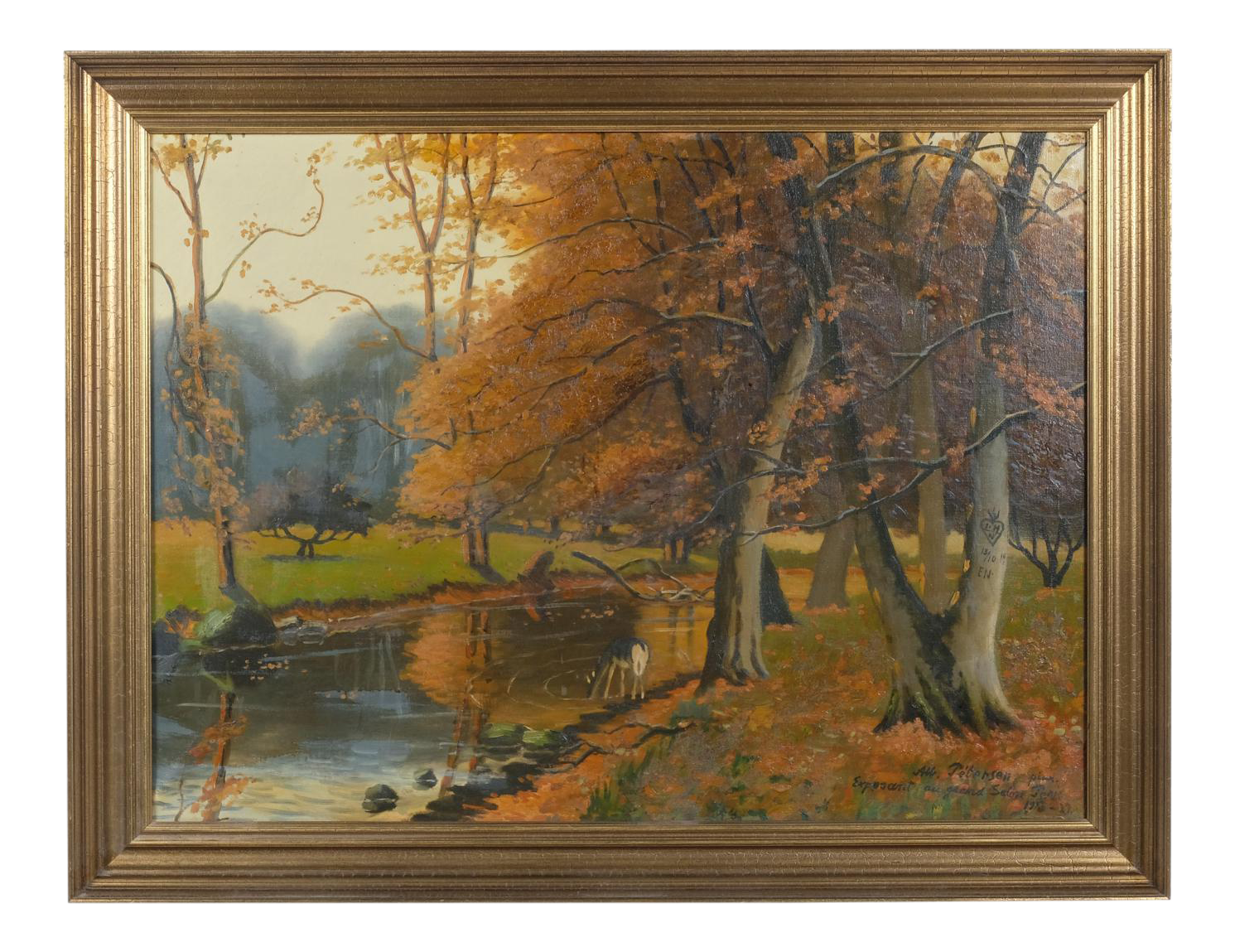 Large Handcrafted Stained Glass Window Panel Deer Drinking Water