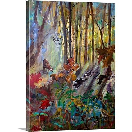 Beautiful Painting Deer Drinking Water From Stream In The Forest
