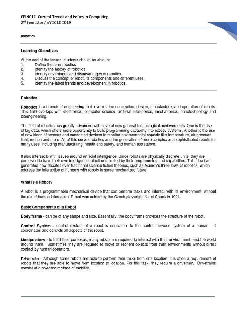 Robotics Docx Robot Technology Free 30 Day Trial Scribd