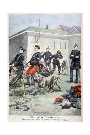 Training Army Dogs To Attack Cyclists Germany 1897 Giclee Print