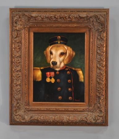 Free Shipping Animal Cartoon Mr Dog Military Uniform Oil Painting