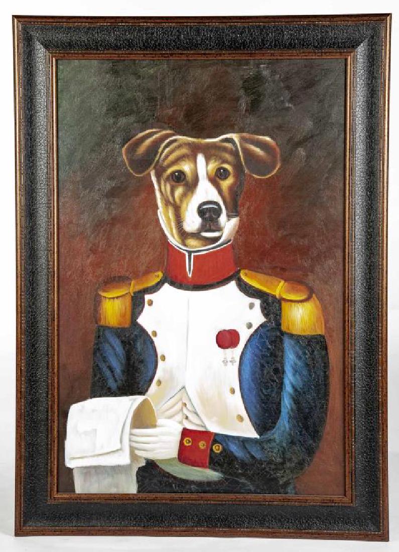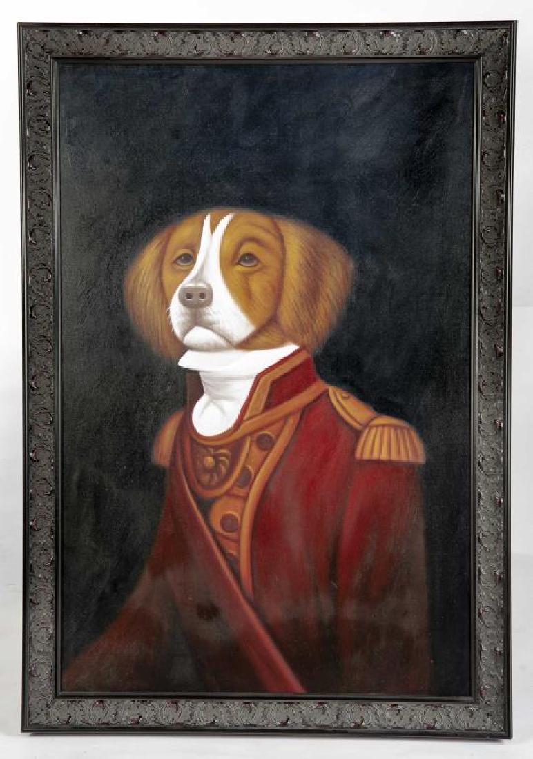 Oil On Canvas A Pair Military Dogs 91cm X