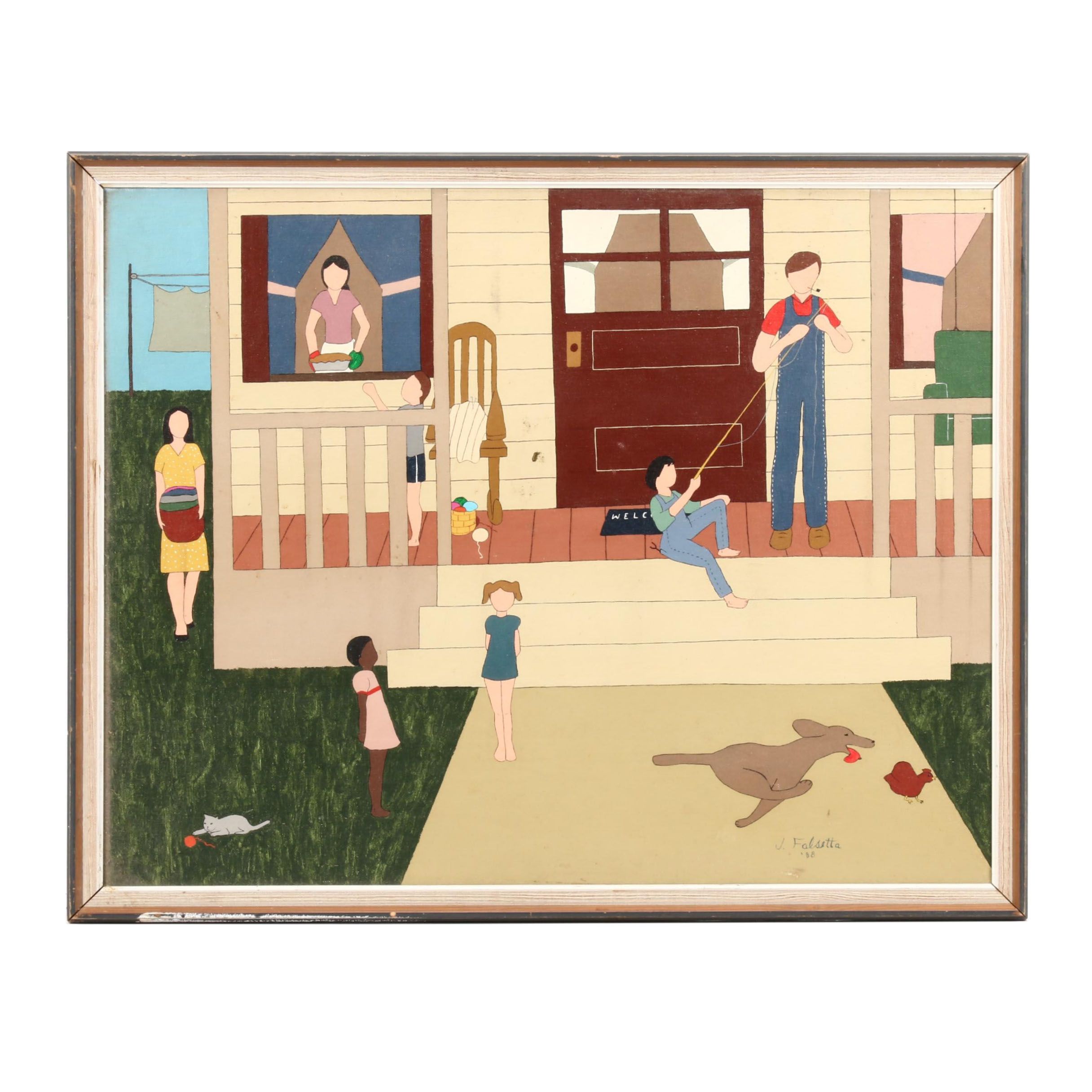 The Visit Original Painting Women 1950s 1960s Pastel Dresses