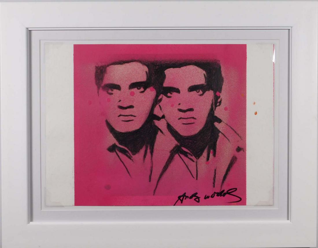 Double elvis painting. The silver elvis series included several double elvises some with side by side and others with overlapping elvises many of which were now propped up against the factory walls. A bold high contrast figure is accompanied by its ghostly duplicate collapsing warhols strategy of serialization into a single frame while also providing an eerie reminder. Andy warhol double elvis 1963. From seattle art museum andy warhol double elvis 19631976 silkscreen ink synthetic polymer paint on canvas 82 14 59 18 in.