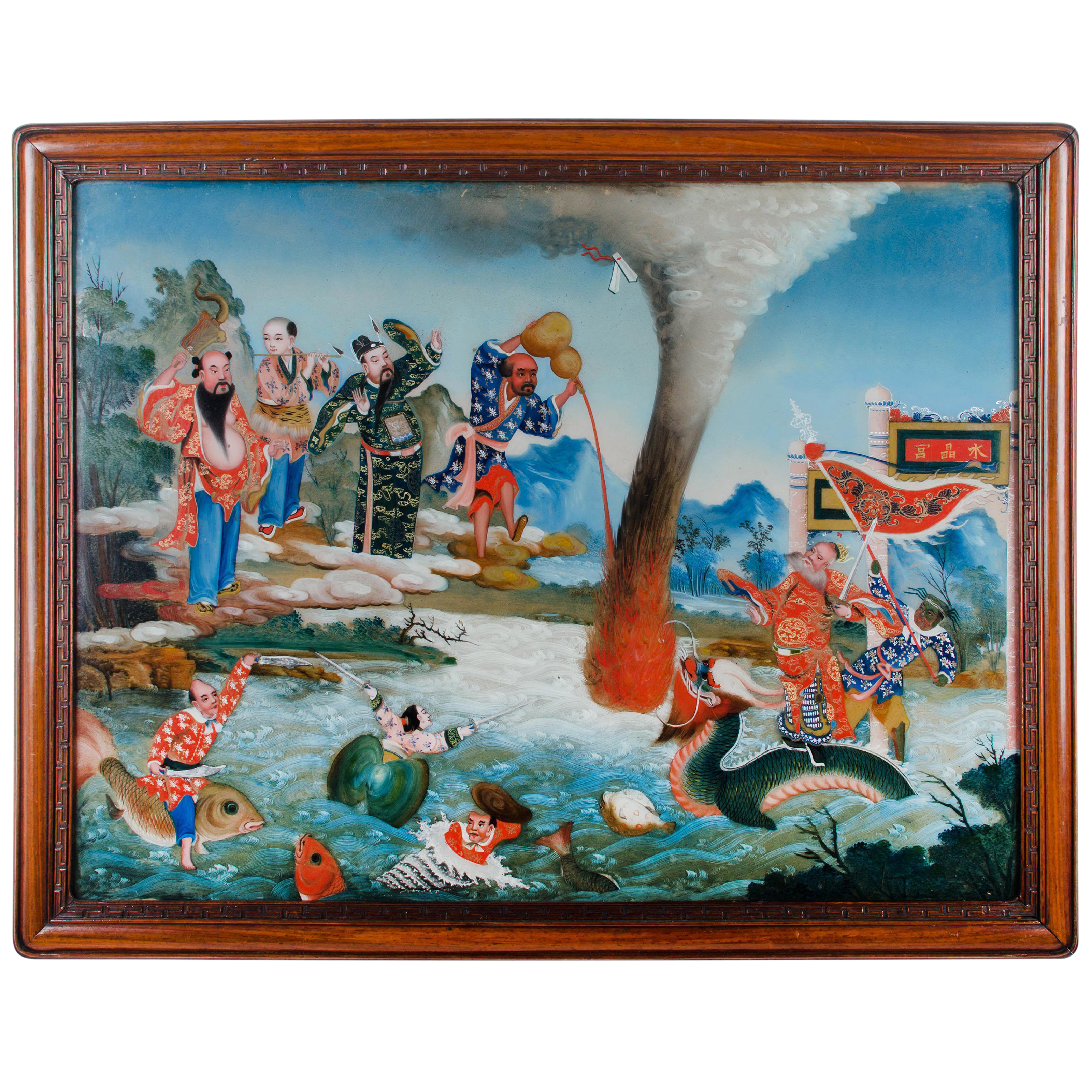 Vintage Reverse Glass Painting Saint St George Slaying Dragon