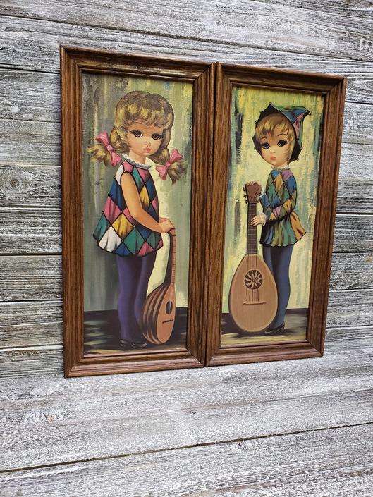 Vintage 1960 Eden Big Eyes Harlequin Girl Big Eyes Big Eyes