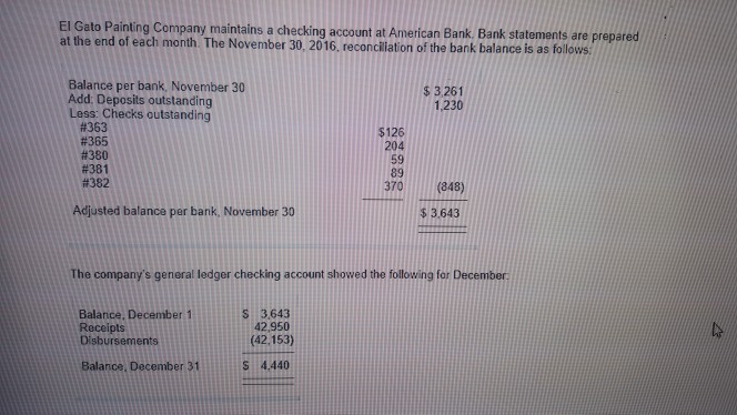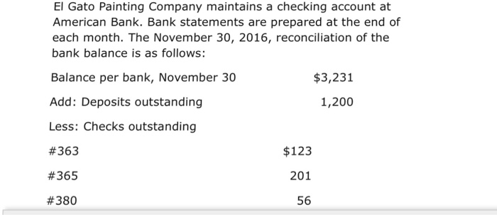 El Gato Painting Company Maintains A Checking Account At American