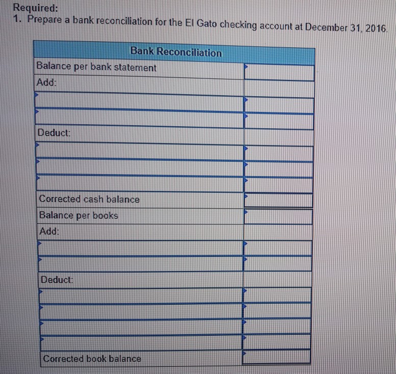 Solved Bank Reconciliation And Adjusting Entries El Gato