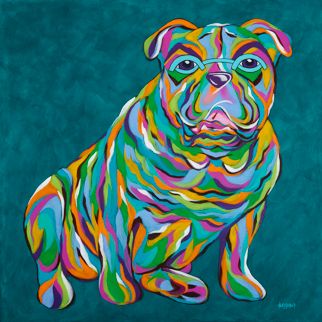 Fun English Bulldog Dog Portrait Bright Colorful Pop Art Painting