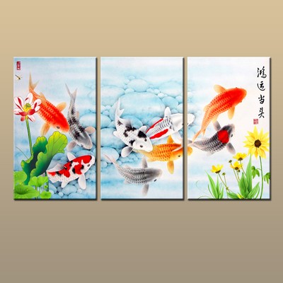 2020 Huge Modern Abstract Oil Painting Feng Shui Fish Koi Canvas