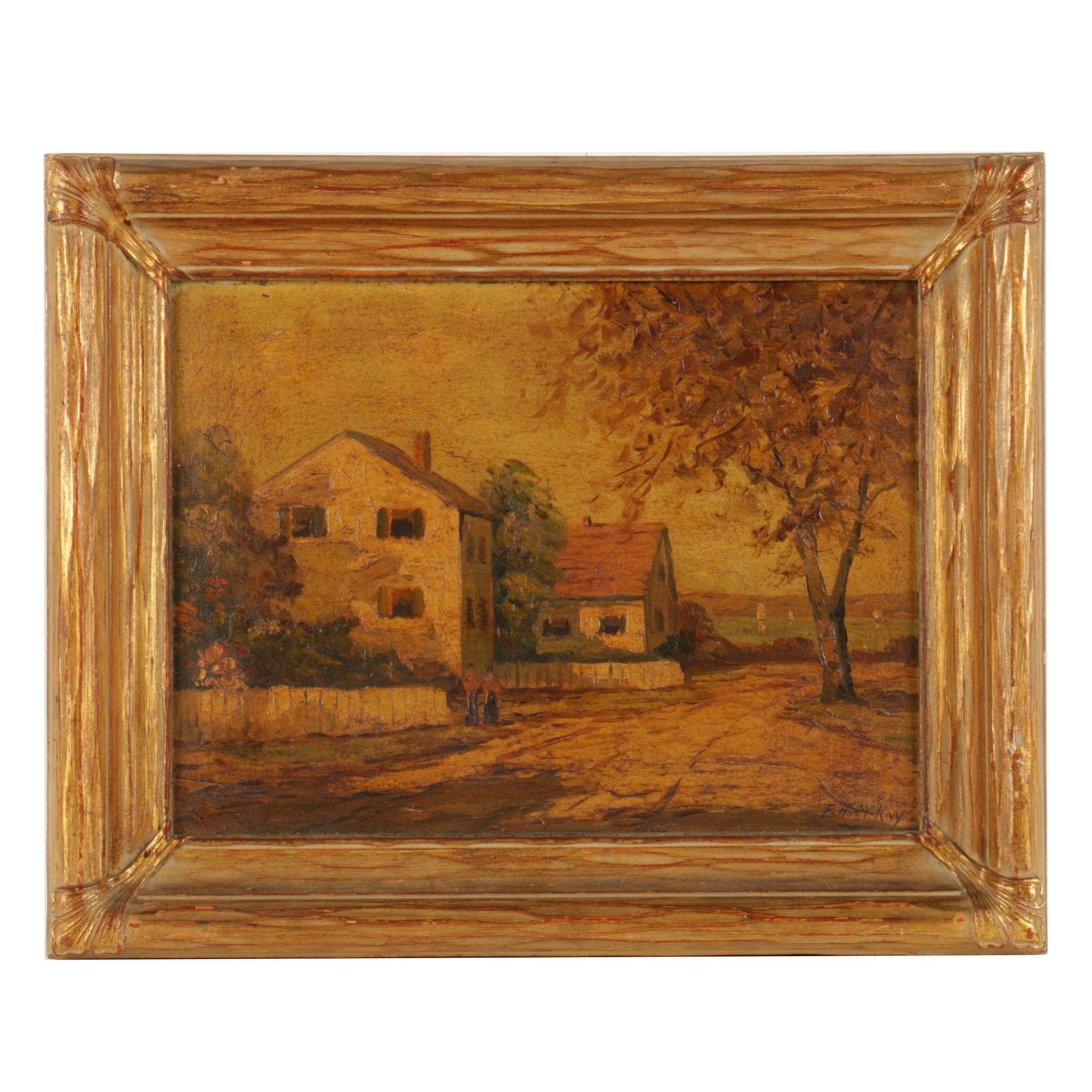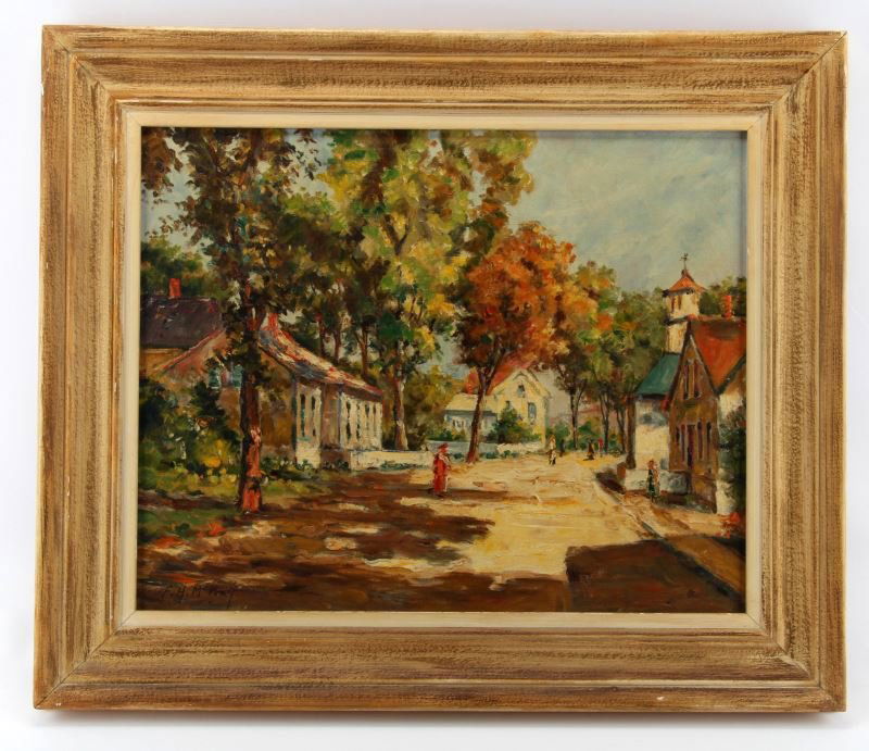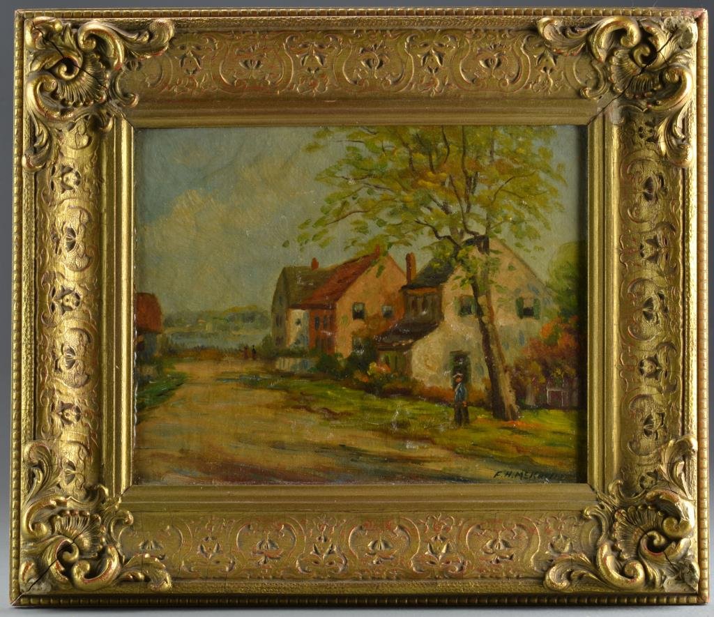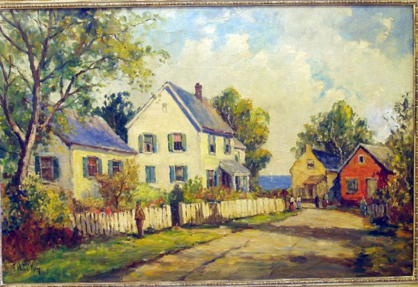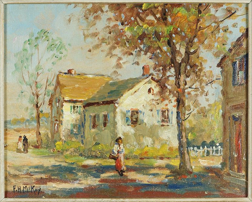 F H Mckay Oil On Board A Maine Village