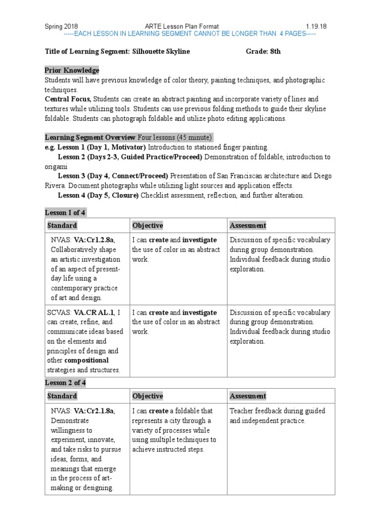 Arte Lp Silhouette Skyline Educational Assessment Lesson Plan