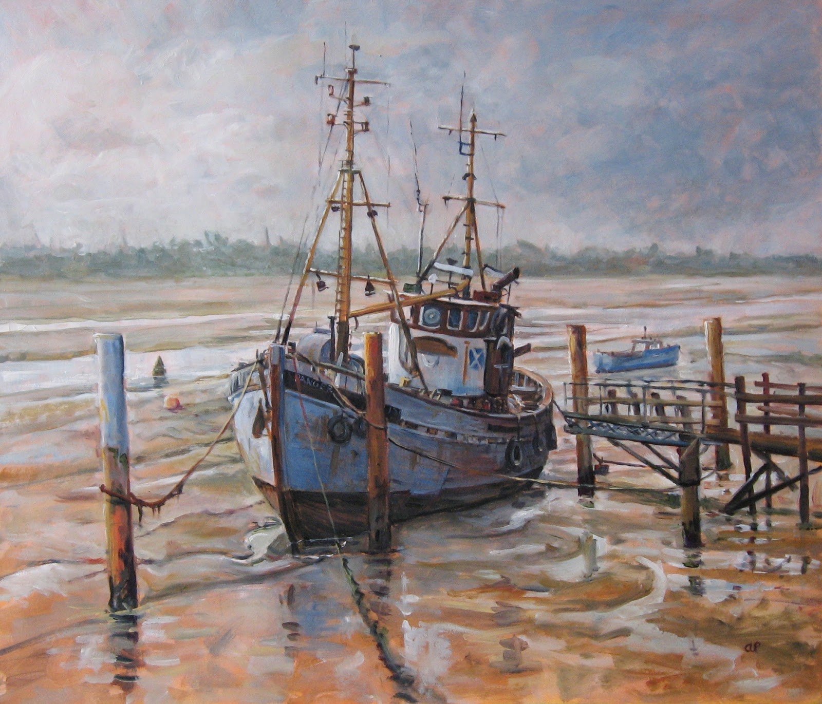 Small Oil Painting Of Fishing Boat Dianna Poindexter