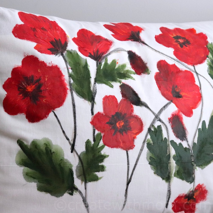 Create With Mom Poppy Flower Inspired Fabric Painted Cushion Cover