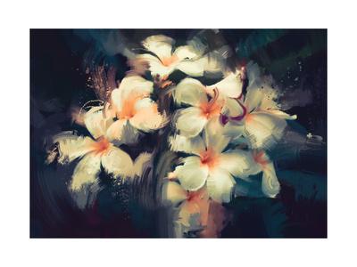 Painting Of Beautiful White Flowers In Dark Background Art Print
