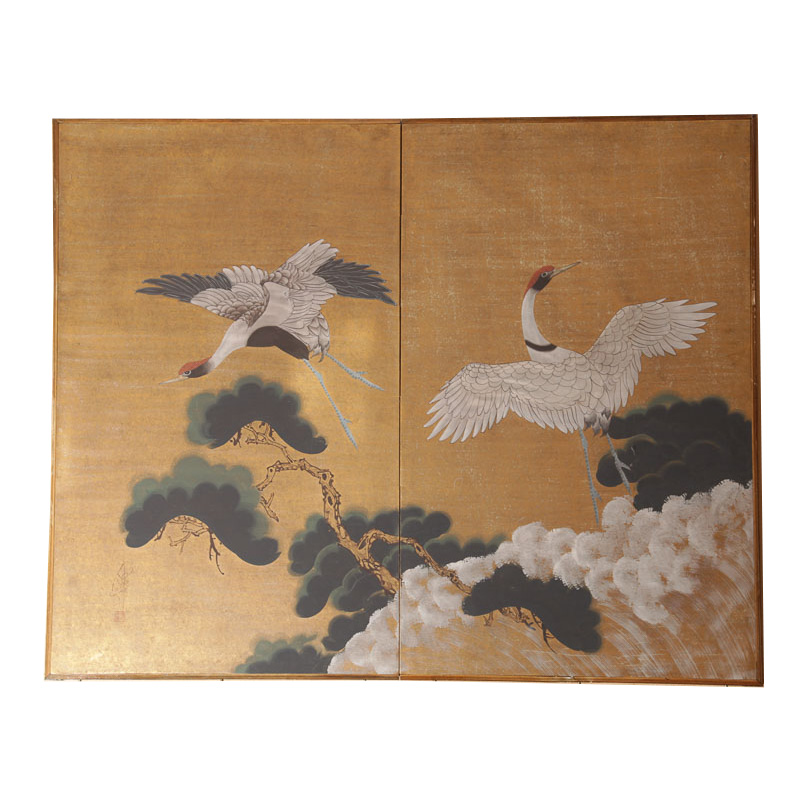 Japanese Painted Folding Screen Panels Of Cranes In Flight Ebth