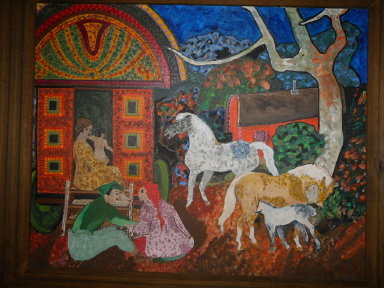 Mid Century Horse Painting Jose Maria De Servin Mexican Folk Art