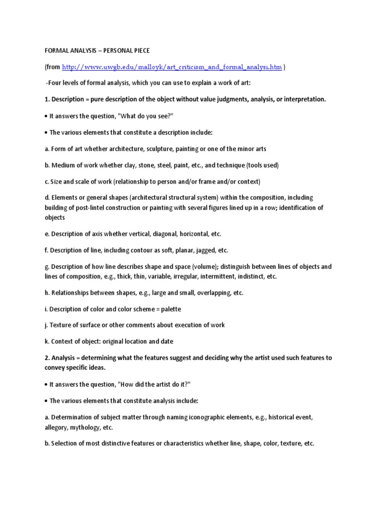 Formal Analysis Example Fill Online Printable Fillable Blank