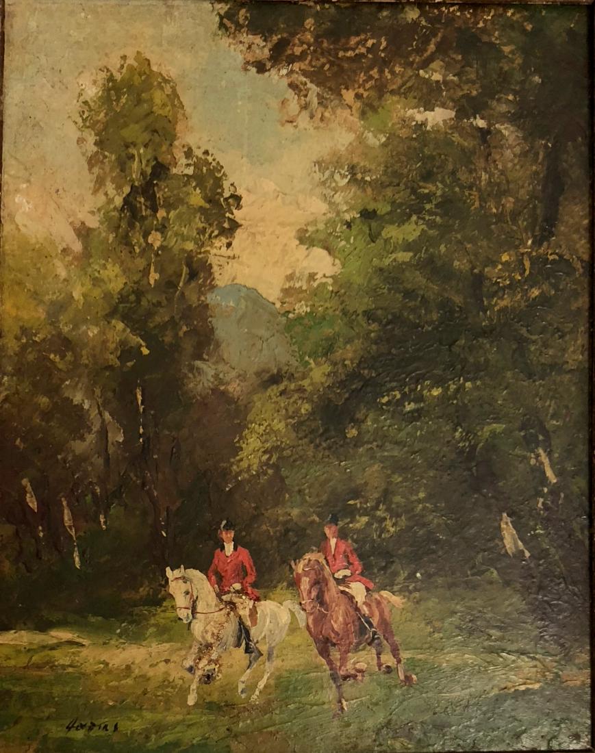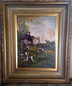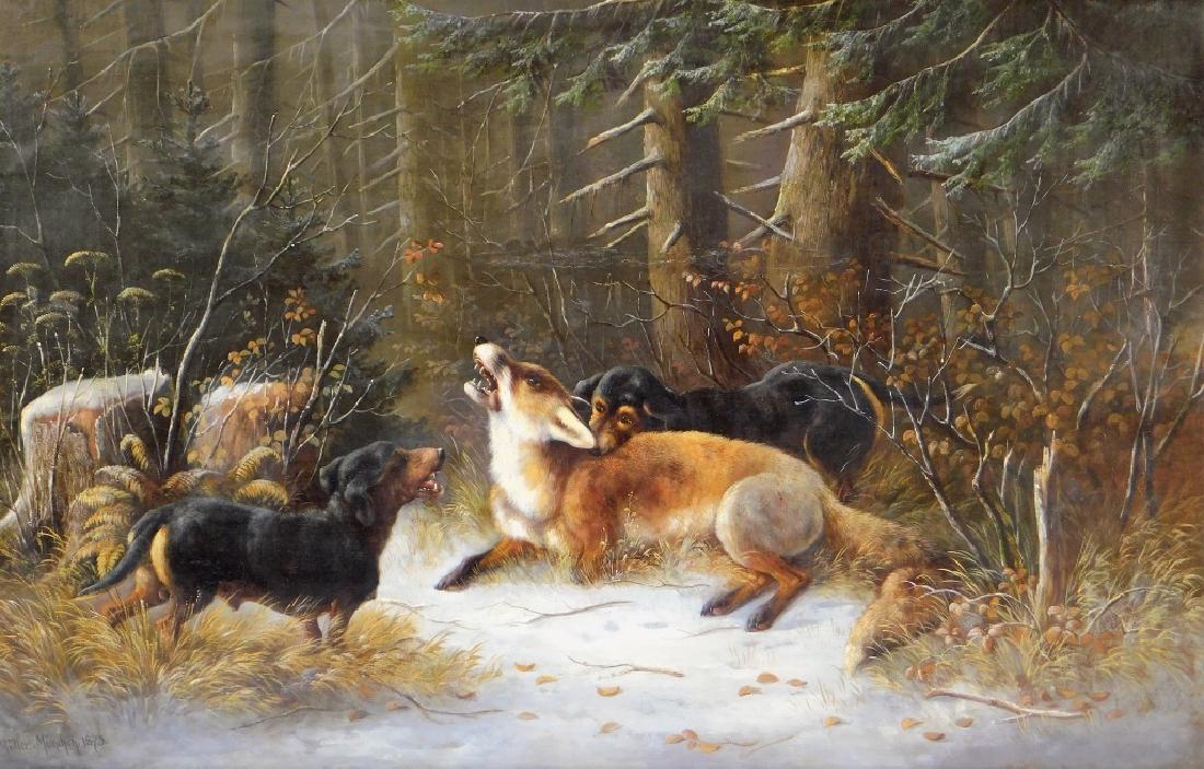 Impressive Antique 19th Century Fox Hunt Oil Painting