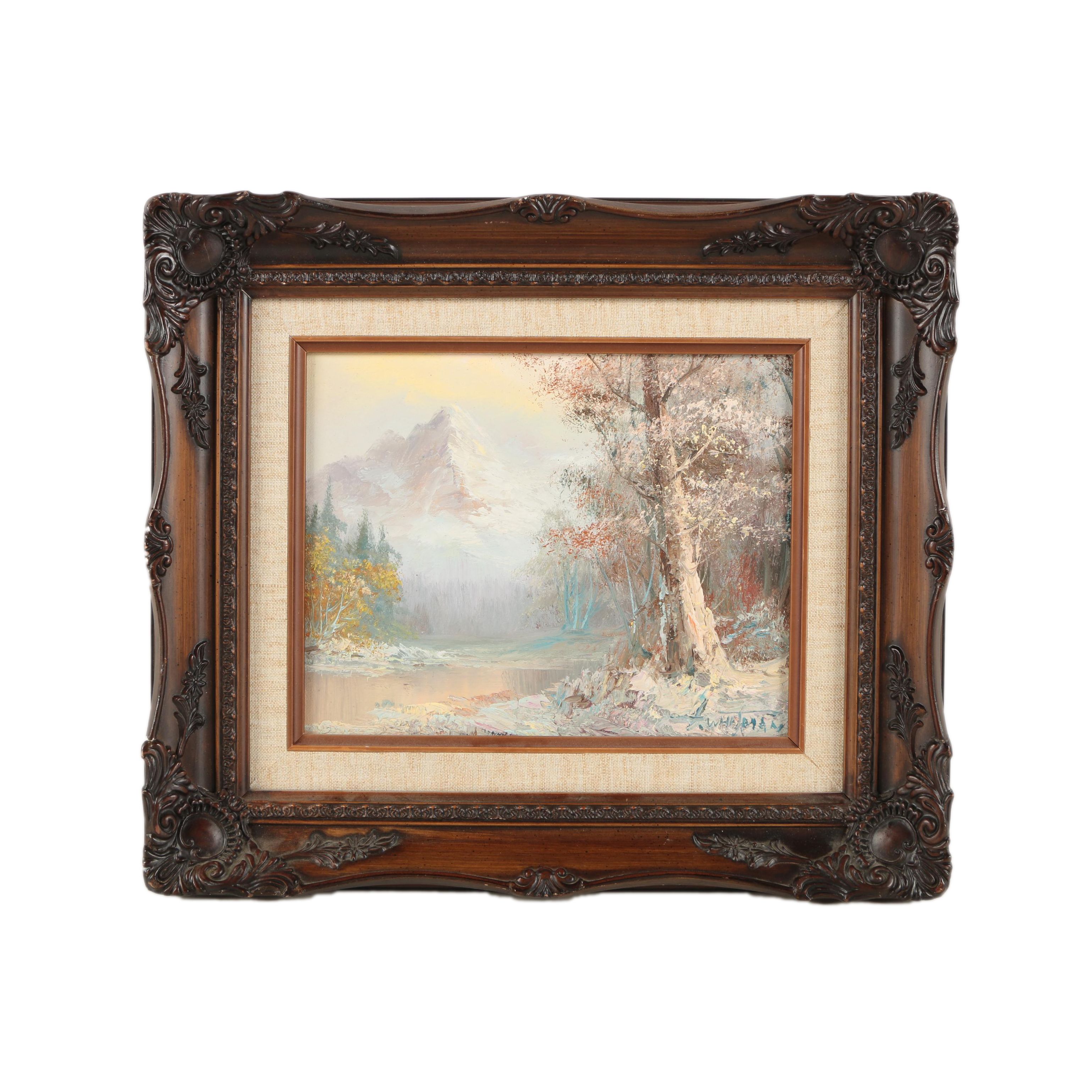 Original G Whitman Oil Painting Trees Mountain Wall Art