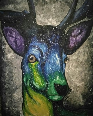 Galaxy Deer Hand Drawn Cosmic Deer Real Watercolor Painting