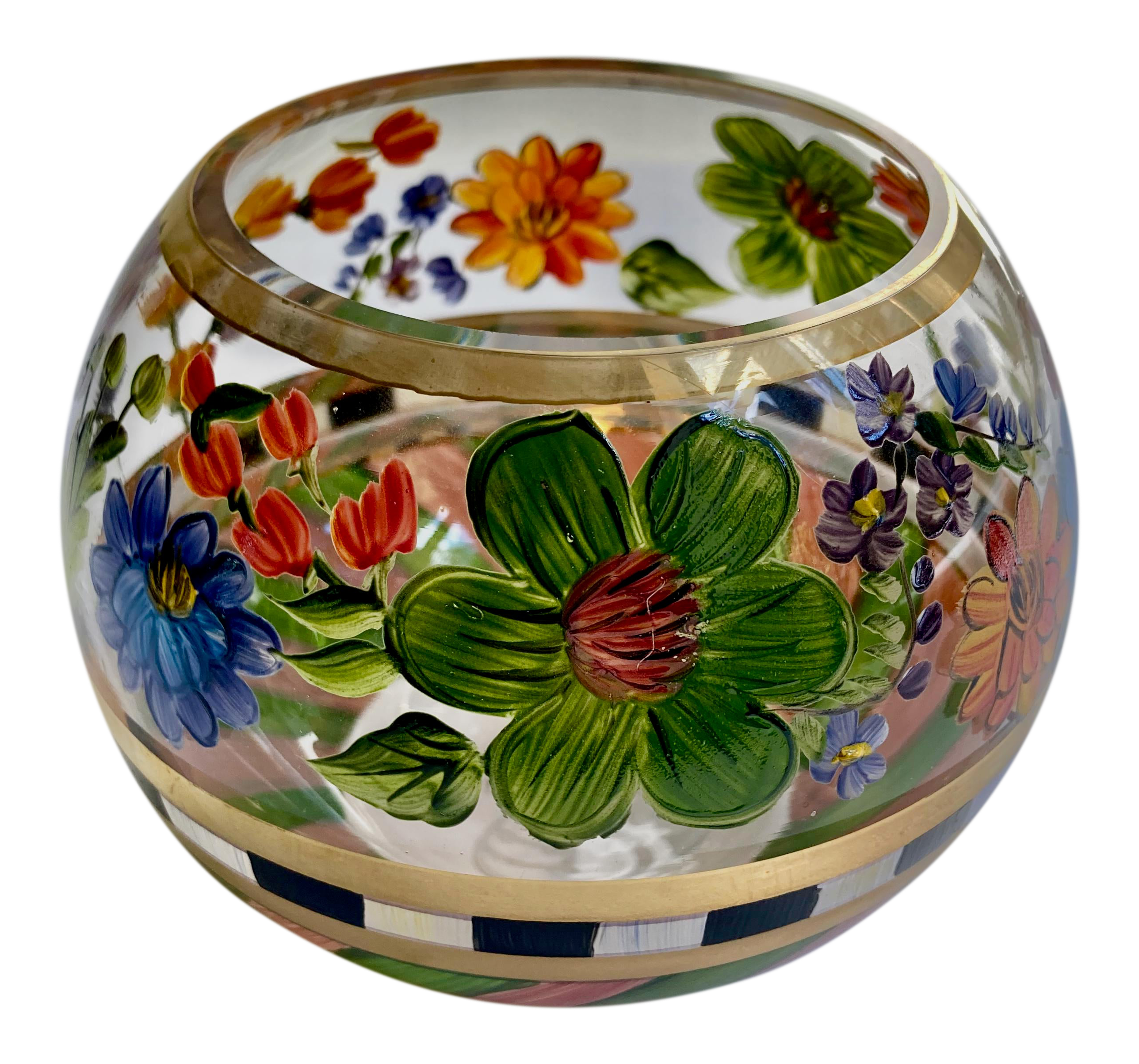 Amazon Com Glass Decorative Bowl Hand Painted Floral Design 9 5 Inches Home Kitchen