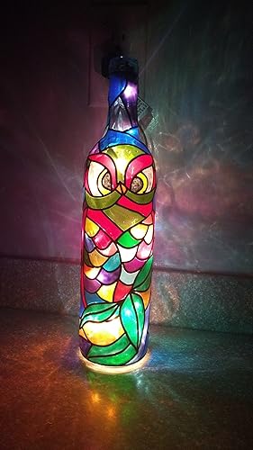 Amazon Com Hand Painted Stained Glass Owl Night Sky Upcycled
