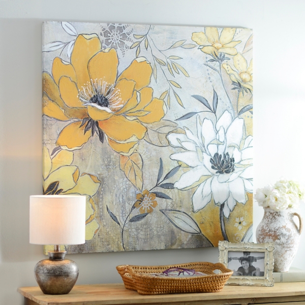 Yellow Grey Nature Canvas Gray Flower Canvas Wall Art Etsy