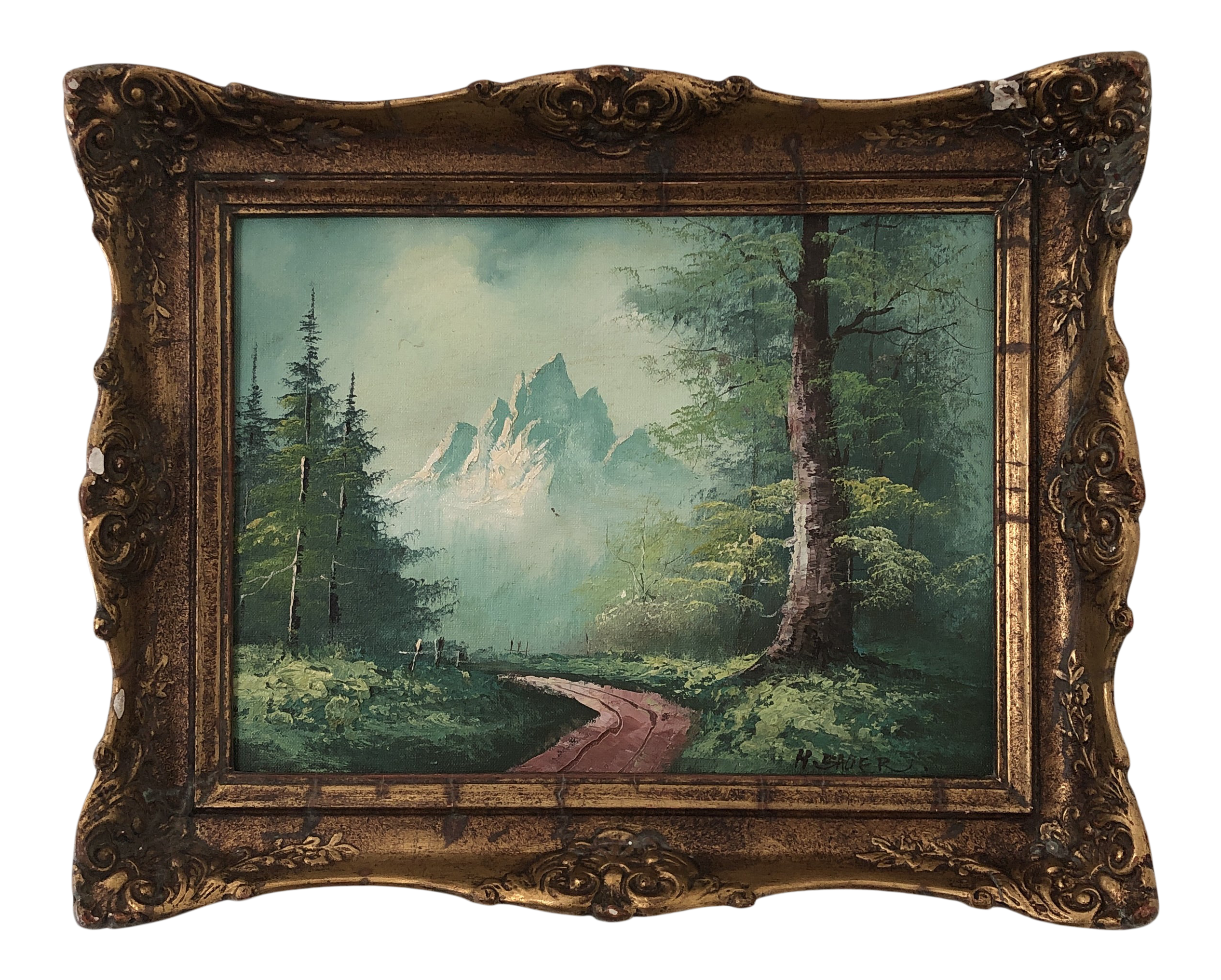 H Bauer Snow Mountain Wilderness Lake Oil Painting Ebay
