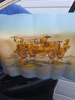 H Hargrove Oil Painting Vintage Signed Barn Fire Fire Truck Oak
