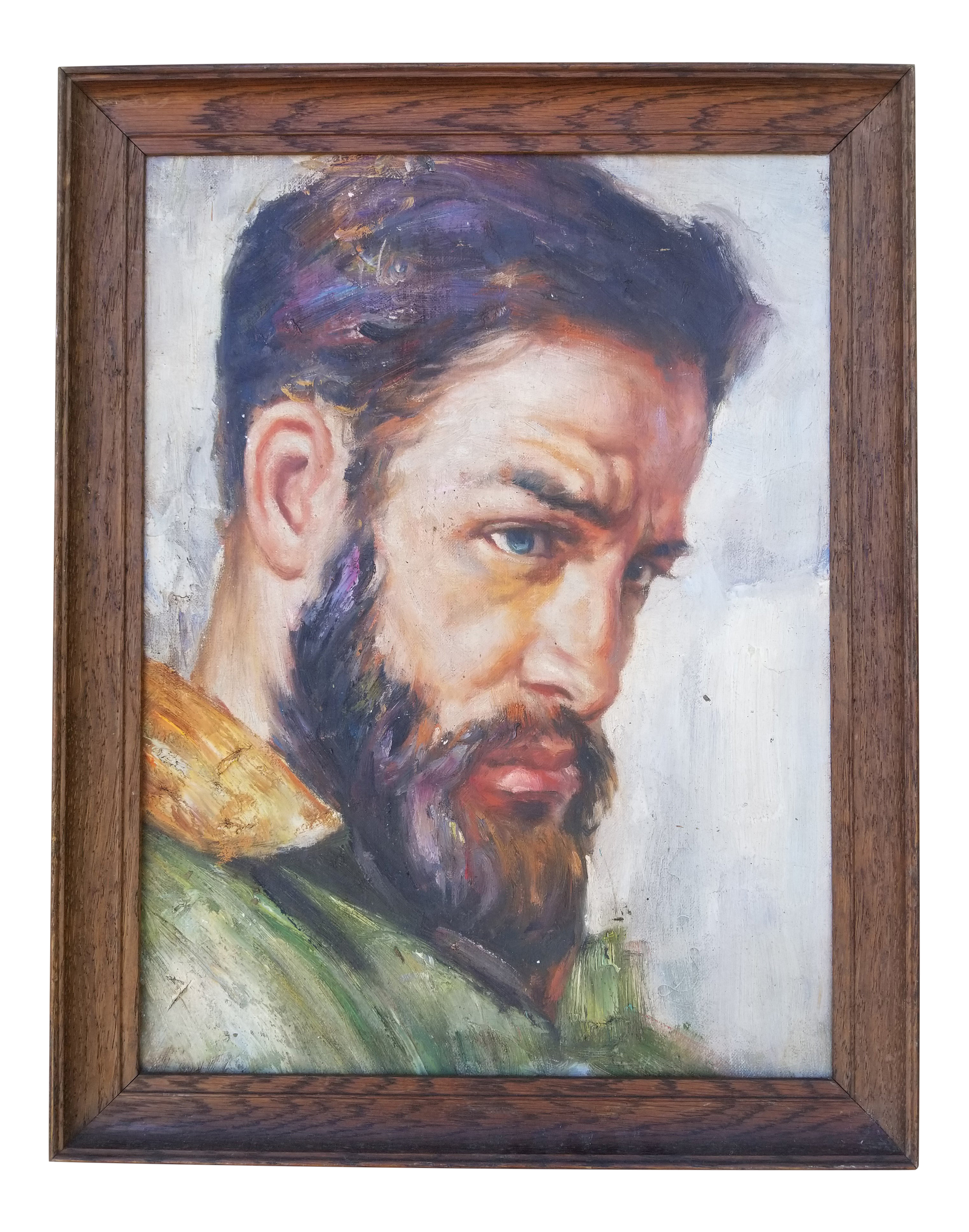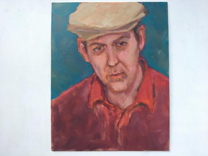 Huge Vintage Oil Portrait Mid Century Slim Handsome Man In Suit