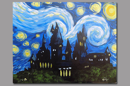 All Ages Welcome Hogwart S Starry Night Beginner Painting Classes New York Coursehorse The Paint Place