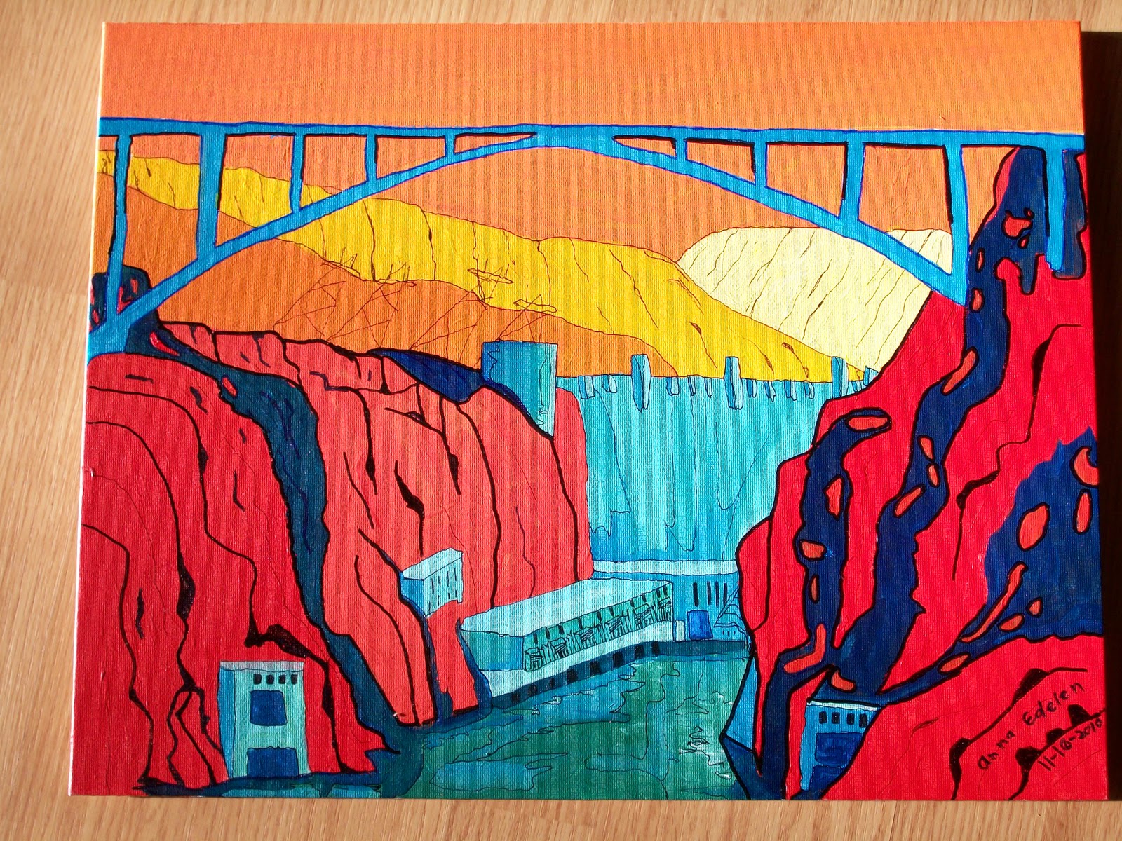 Hoover Dam Bridge Under Construction Painting By Carmela