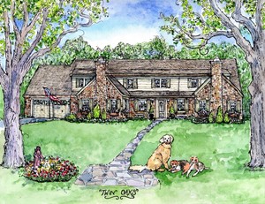 Watercolor Painting Of Your House Watercolor Custom House