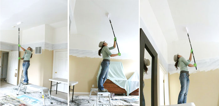Then let the primer dry before painting. Cover the floor with plastic and find a good pair of goggles drips are a fact of life when painting the ceiling. Your first priority when dealing with a water stain should be to find the source of the leak or in. Clean the stain.