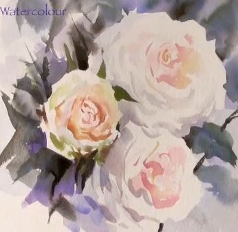 An Original Watercolor Painting Of A Vintage Roses Stock