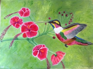 Mini Hummingbird Oil Painting By Cat Pope Contemporary