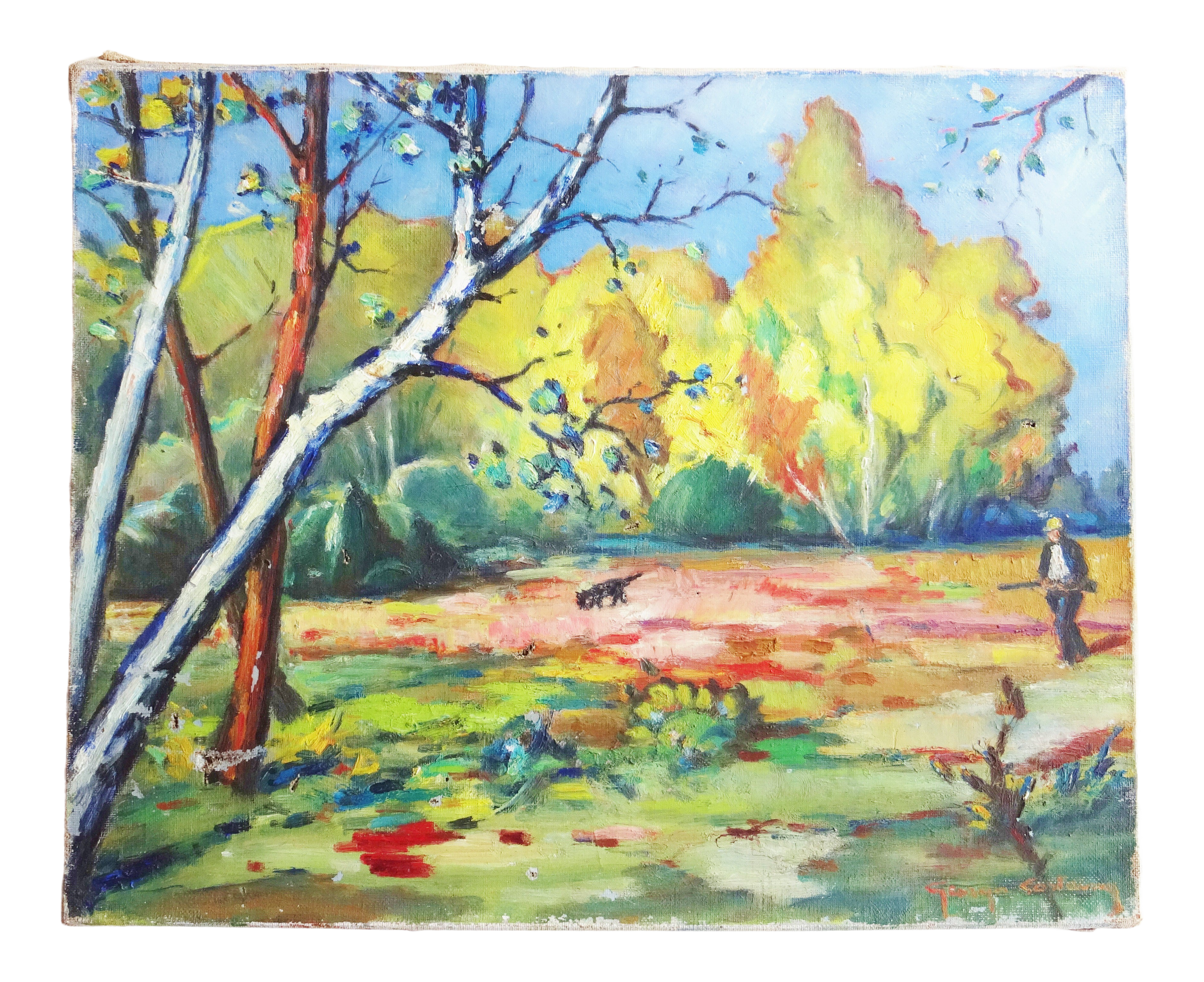 Fine Art Oil Painting On Canvas Hunting Scene Dog French School