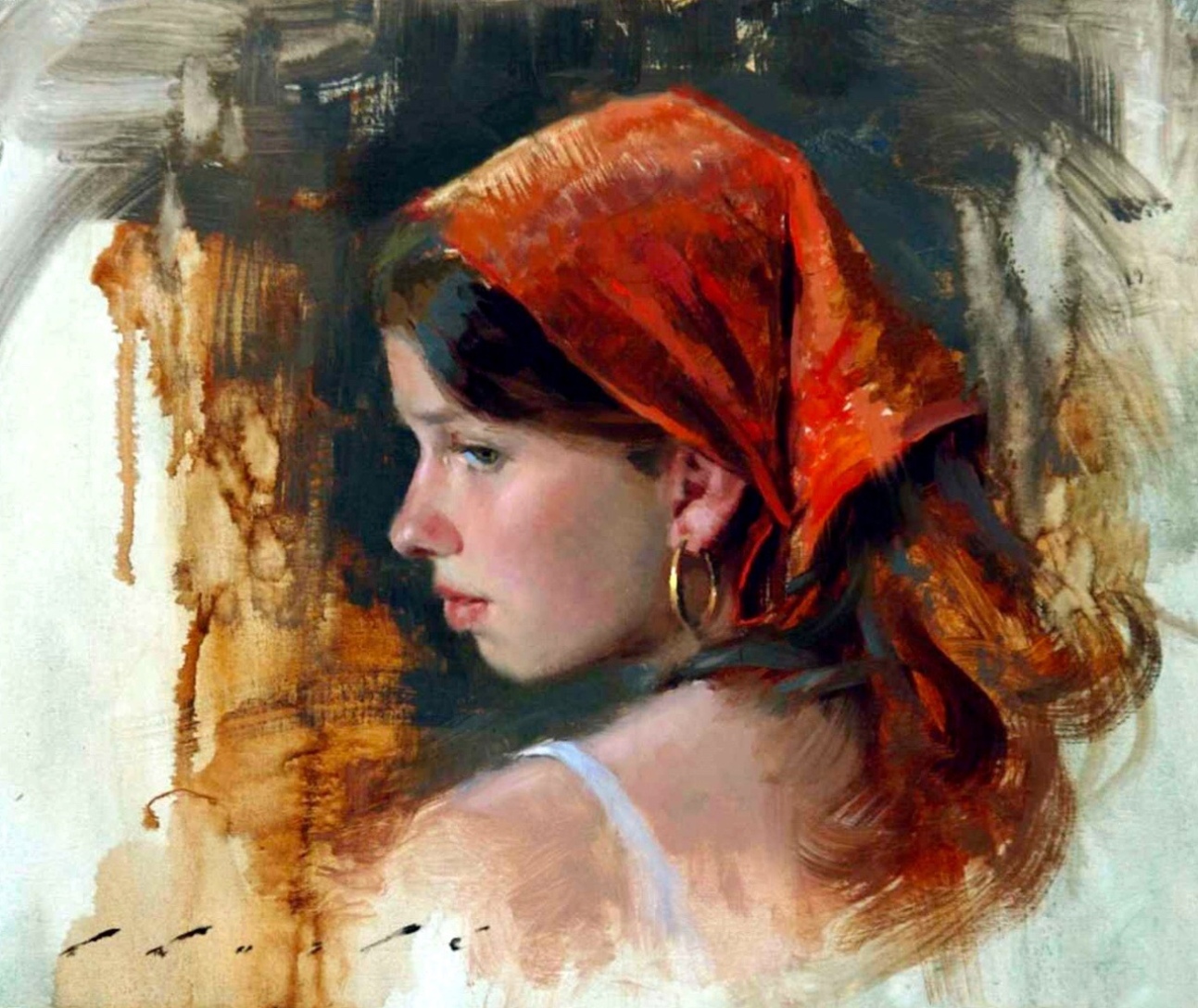 Vintage Oil Painting By Indian Artist V Rajendran Blue Woman