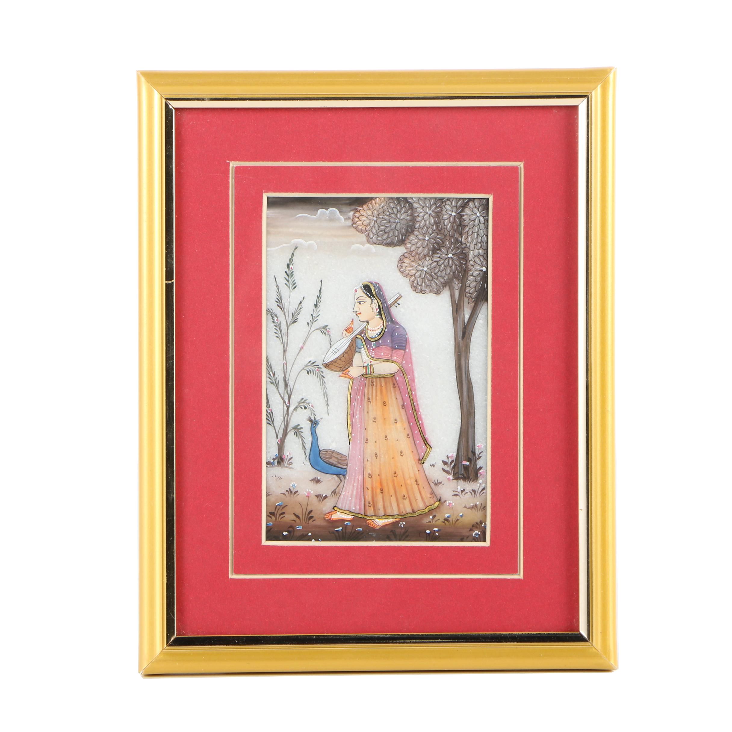 Company School 19th Century Indian Mica Painting In Gouache