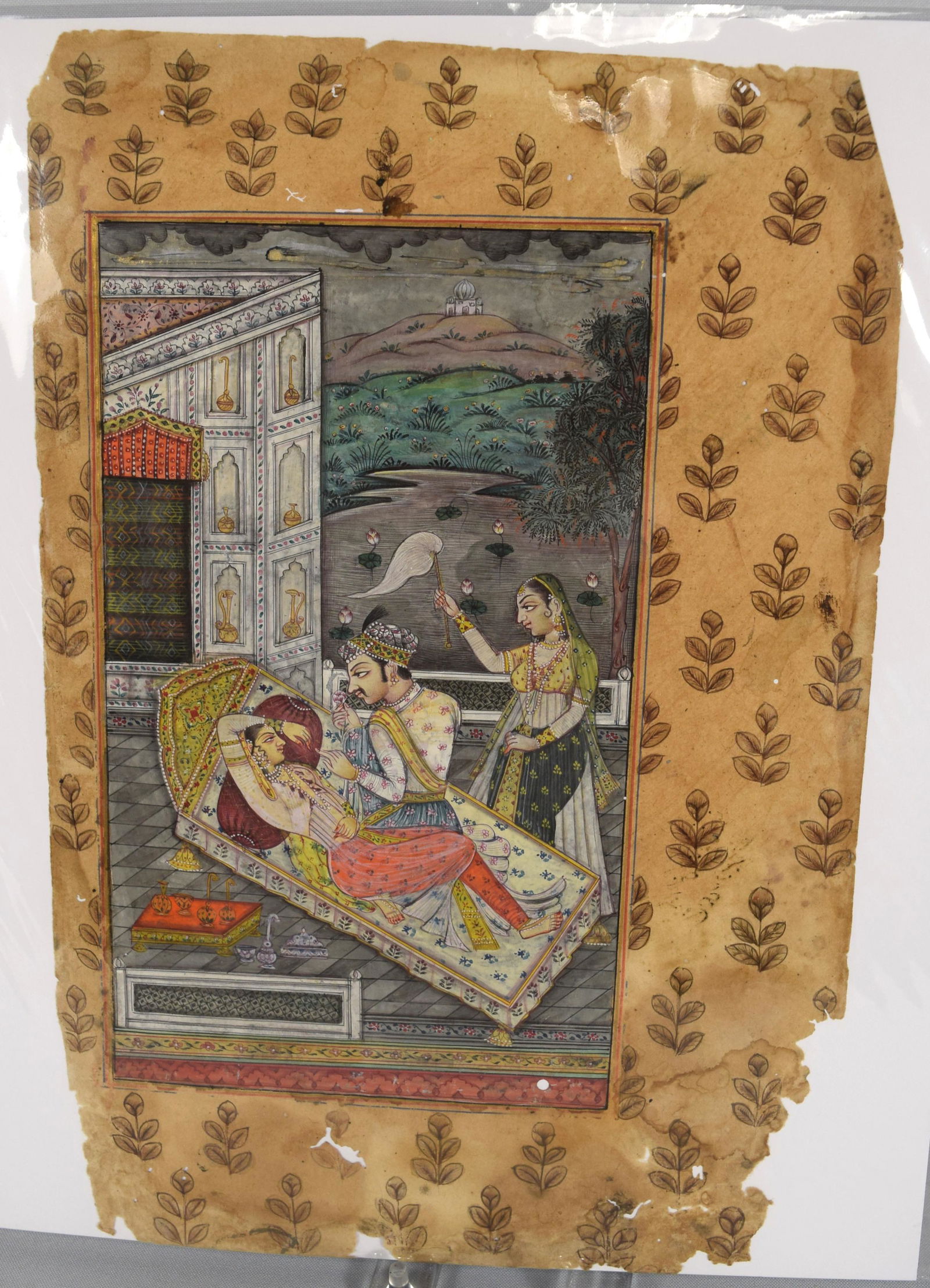 Indian King And Queen Miniature Painting On Old Stamp Paper From