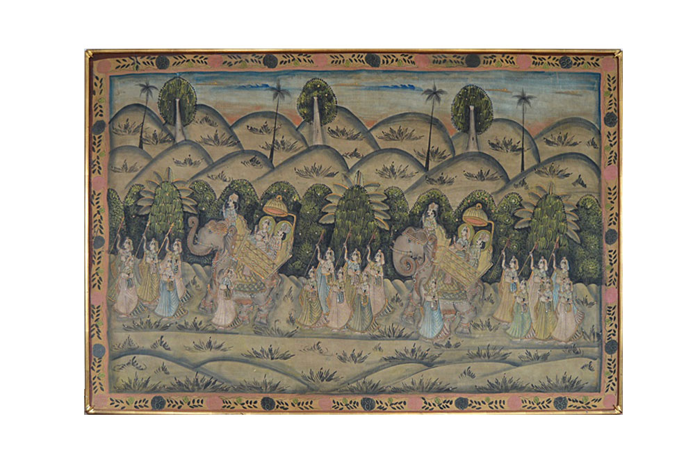 India Art Antique Painting On Fabric Bride Hand Scene Handmade