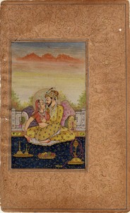 Indian Mughal Procession Historical Miniature Painting Erotic