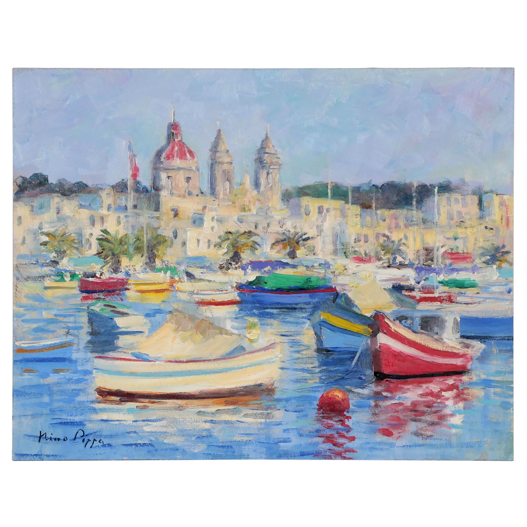 Agnes Torrielli Moonlight Fishing Village Italian Original Oil